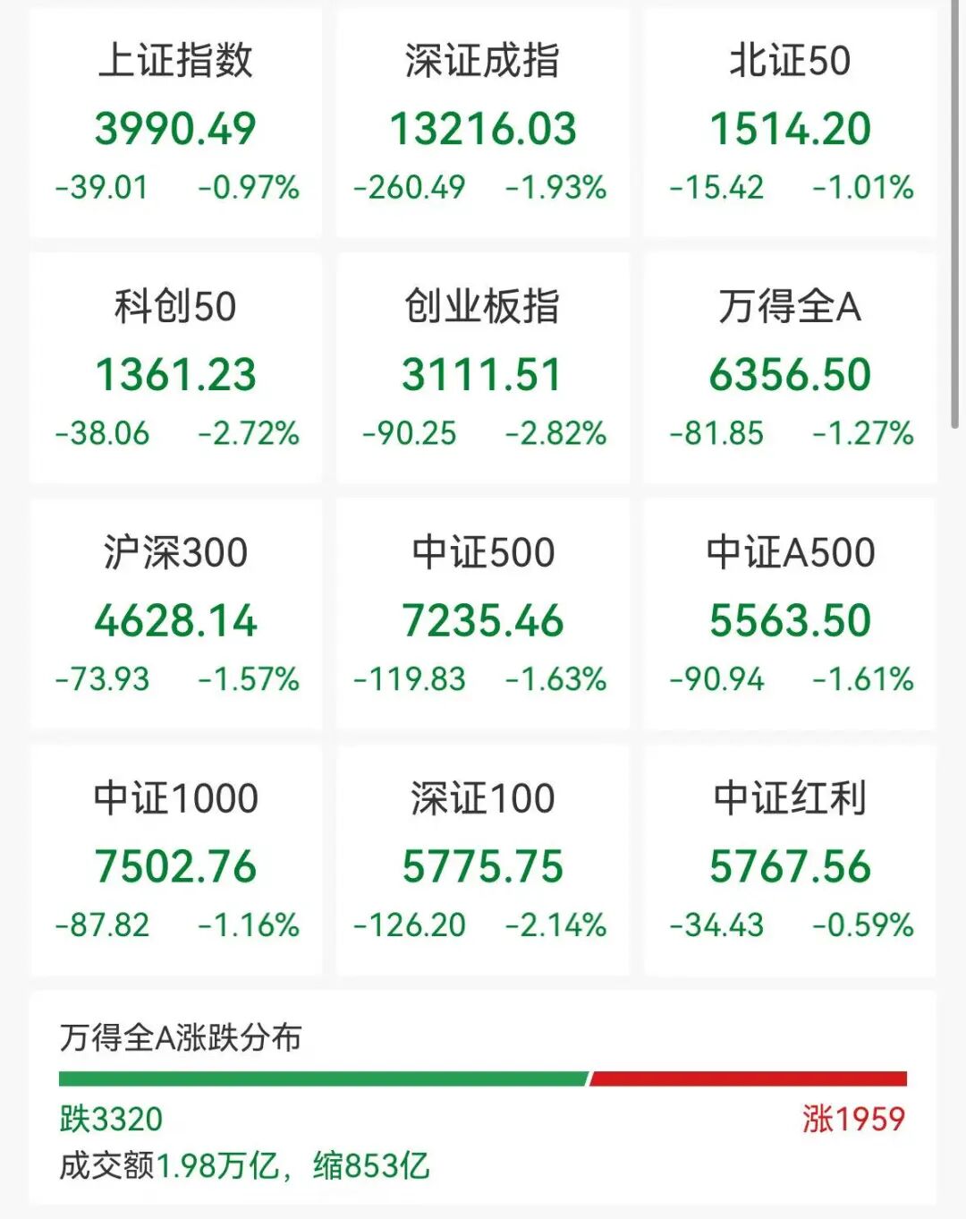 11月14日配资论坛推荐网,A股市场全天震荡调整,截至收盘,沪指跌0.97%,失守4000点,深成指跌1.93%,创业板指跌2.82%。沪深两市成交额1.96万亿,较上一个交易日缩量853亿。