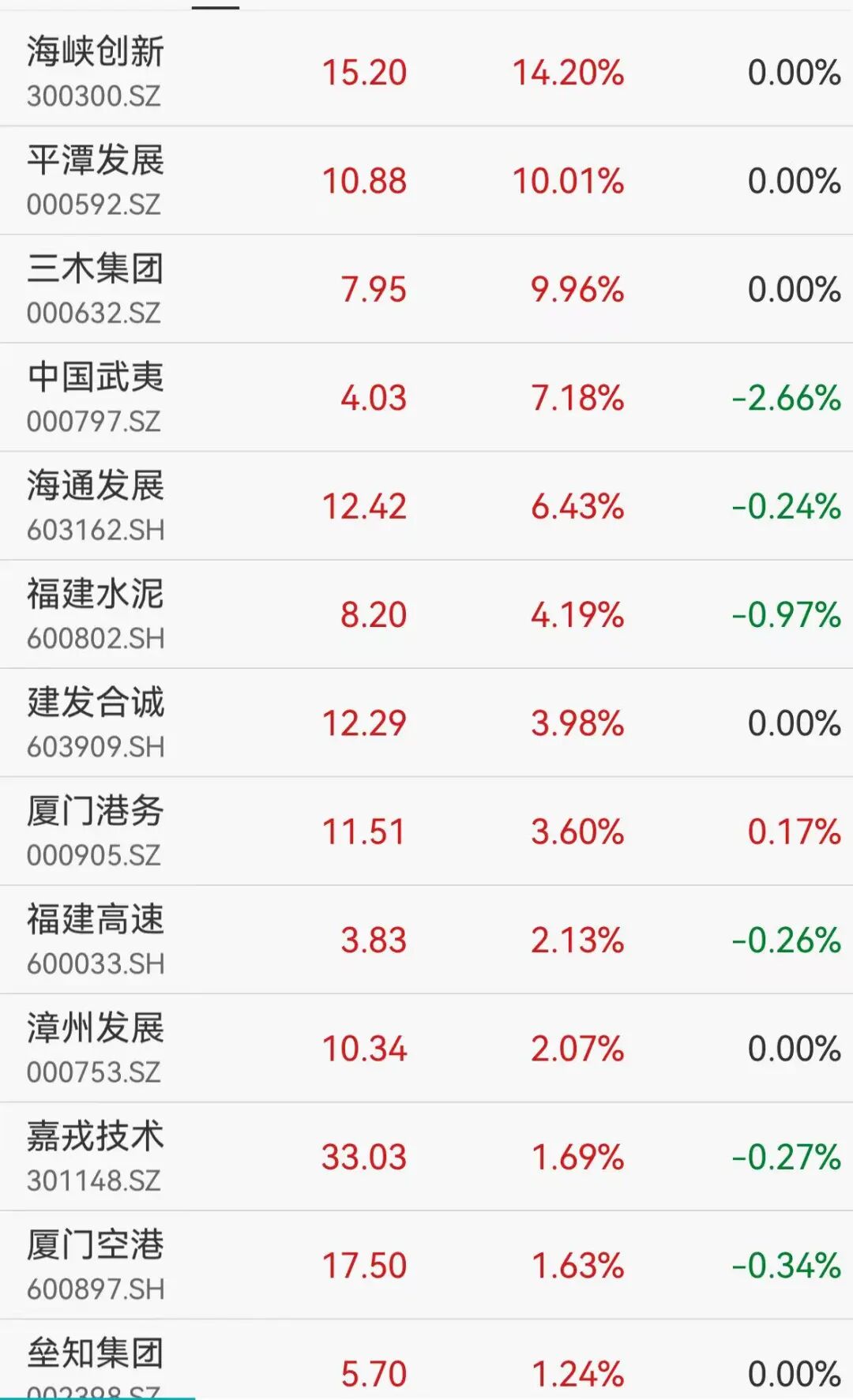 海南板块延续强势,海南矿业、海南海药等涨停,多个涨超3%。福建板块反复活跃,平潭发展涨停,多股跟涨。